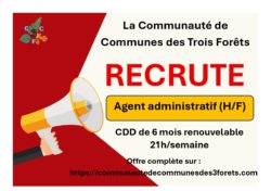 La CC3F recrute un agent administratif (H/F) pour un CDD de 6 mois renouvelable de 21 h/semaine.
